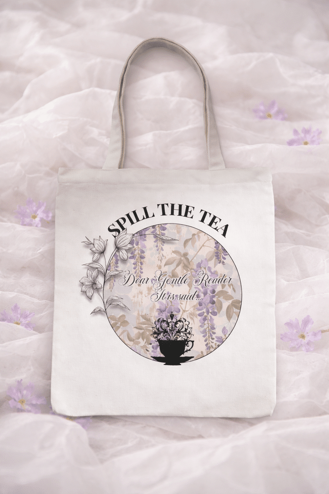 Ajoutez une touche d’élégance et de mystère à votre quotidien avec ce tote bag personnalisé, issu de la collection Régency, inspirée de l’esthétique romantique d’un autre temps (style Bridgerton, sans licence). Orné d’un motif floral lilas et beige, d’une théière délicate et de la célèbre phrase “Spill the tea”, ce sac en toile devient un…